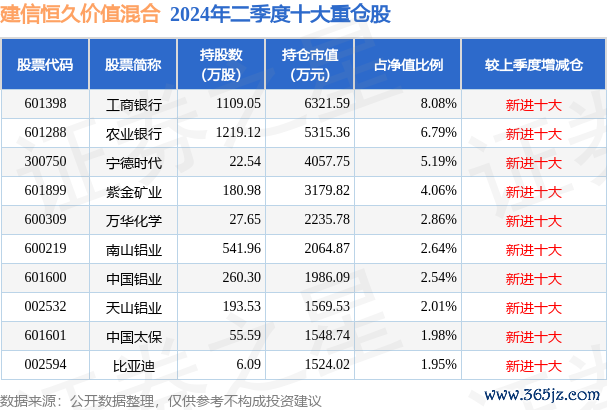 建信长久价值夹杂为夹杂型-偏股基金,笔据最新一期基金季报流露,该基金财富建树:股票占净值比64.58%,无债券类财富,现款占净值比35.93%。基金十大重仓股如下: