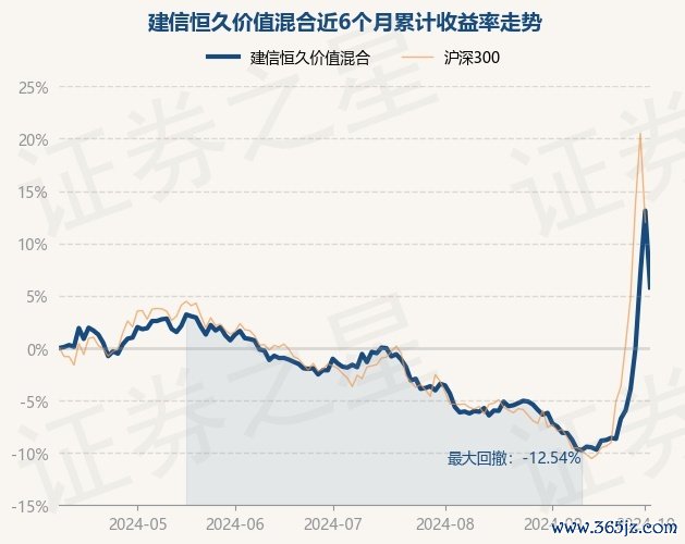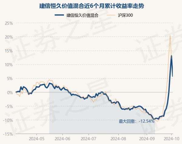 本站音信,10月9日,建信长久价值夹杂最新单元净值为0.9322元,累计净值为4.2267元,较前一往来日下落6.48%。历史数据流露该基金近1个月高潮17.08%,近3个月高潮6.39%,近6个月高潮5.79%,近1年高潮6.73%。该基金近6个月的累计收益率走势如下图: