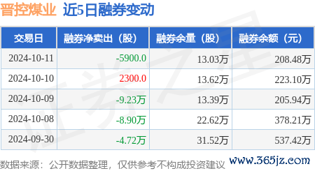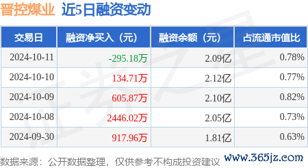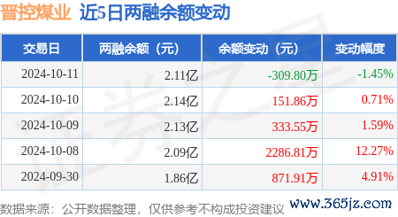 本站音书,10月11日,晋控煤业(601001)融资买入1330.59万元,融资偿还1625.77万元,融资净卖出295.18万元,融资余额2.09亿元,近20个往异日中有13个往异日出现融资净买入。