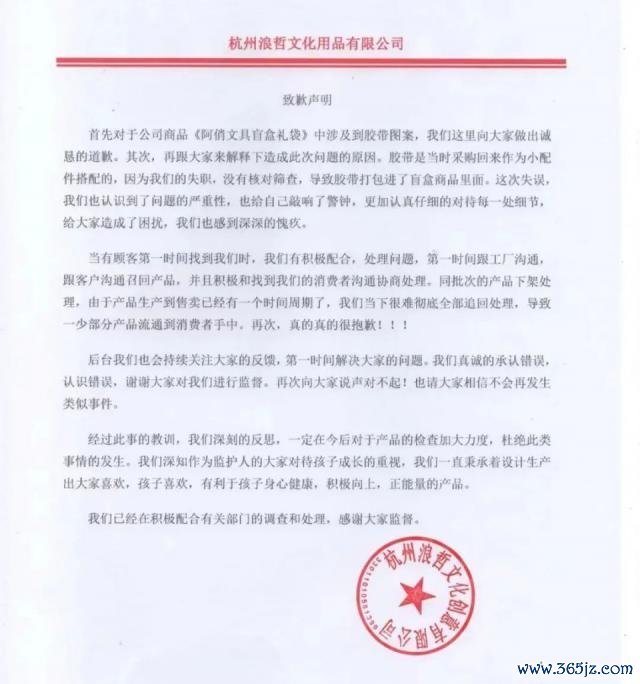 "本年 7 月,公司向外贸公司外采了一批胶带,装于贴纸盲盒中,但那段技巧我碰巧有事放假,这批家具查对筛查就出现了松驰,对此公司终点对不起。"该认真东谈主称 8 月已发现贴纸图案问题,并发布谈歉声明,当今正在全力追回已售出的几十份包含不良图案的贴纸盲盒。