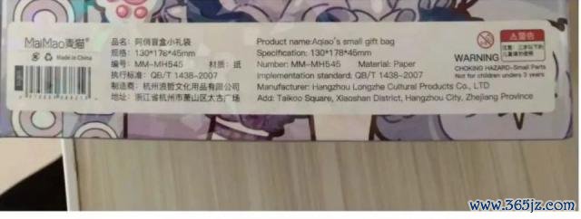 据该家长曝光的盲盒信息表示,该商品品名为"阿俏盲盒小礼袋",制造商为杭州"浪哲",地址位于杭州萧山区。
