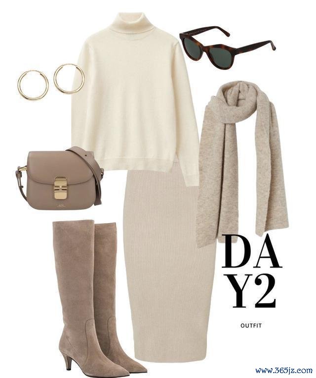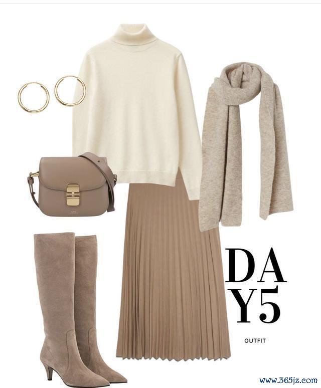 第二天的搭配能换成存眷的念念路哦,像白毛衣搭配浅米色半裙,接着用及膝长靴干脆地肃除,这是能散漫出既熟习又柔柔魔力的搭配呢。
